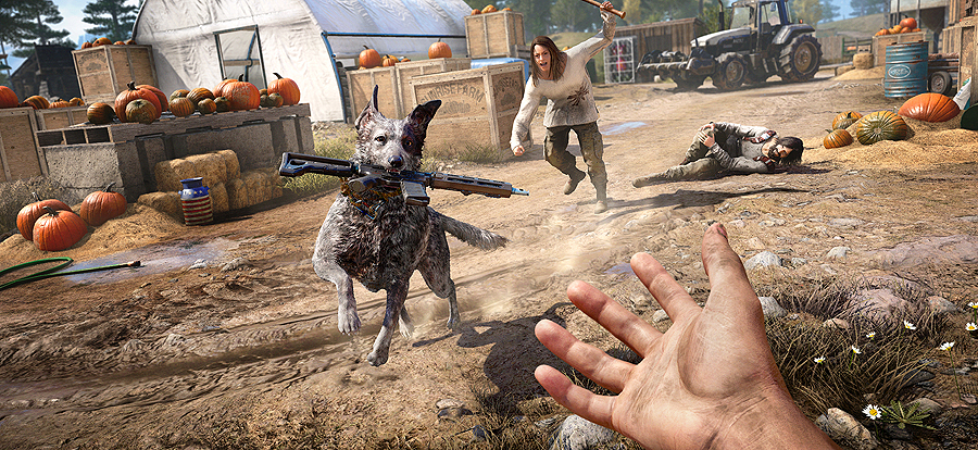 Aus technischer Sicht gibt’s an Far Cry 5 im Wesentlichen nichts zu bemängeln. Die Grafik ist detailliert, die Texturen scharf, die Animationen flüssig. Effekte wie Licht, Schatten, Wasser und dergleichen sind zeitgemäß und machen ordentlich was her. Die Zwischensequenzen, die uns das Spiel im Rahmen der Storymissionen regelmäßig präsentiert, machen hier keine Ausnahme. Die deutsche Lokalisation ist ordentlich, wenn auch nicht lippensynchron. Die musikalische Untermalung ist stets passend und die Soundeffekte belasten auf Wunsch gerne wummernd die Nerven Eurer Nachbarn.